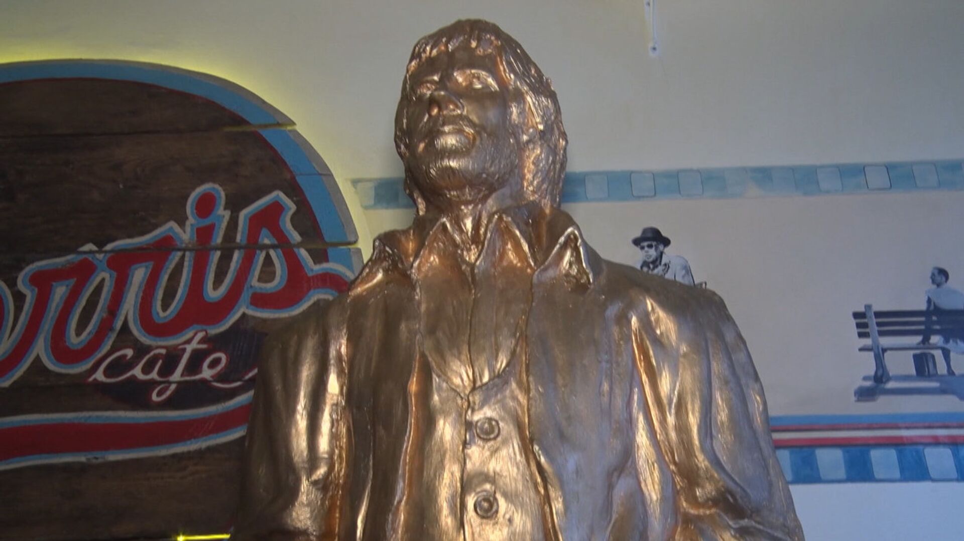 Памятник американскому актеру установили в честь его 78-летия в местном кафе с одноименным названием. Смотрите на видео, как выглядит статуя.