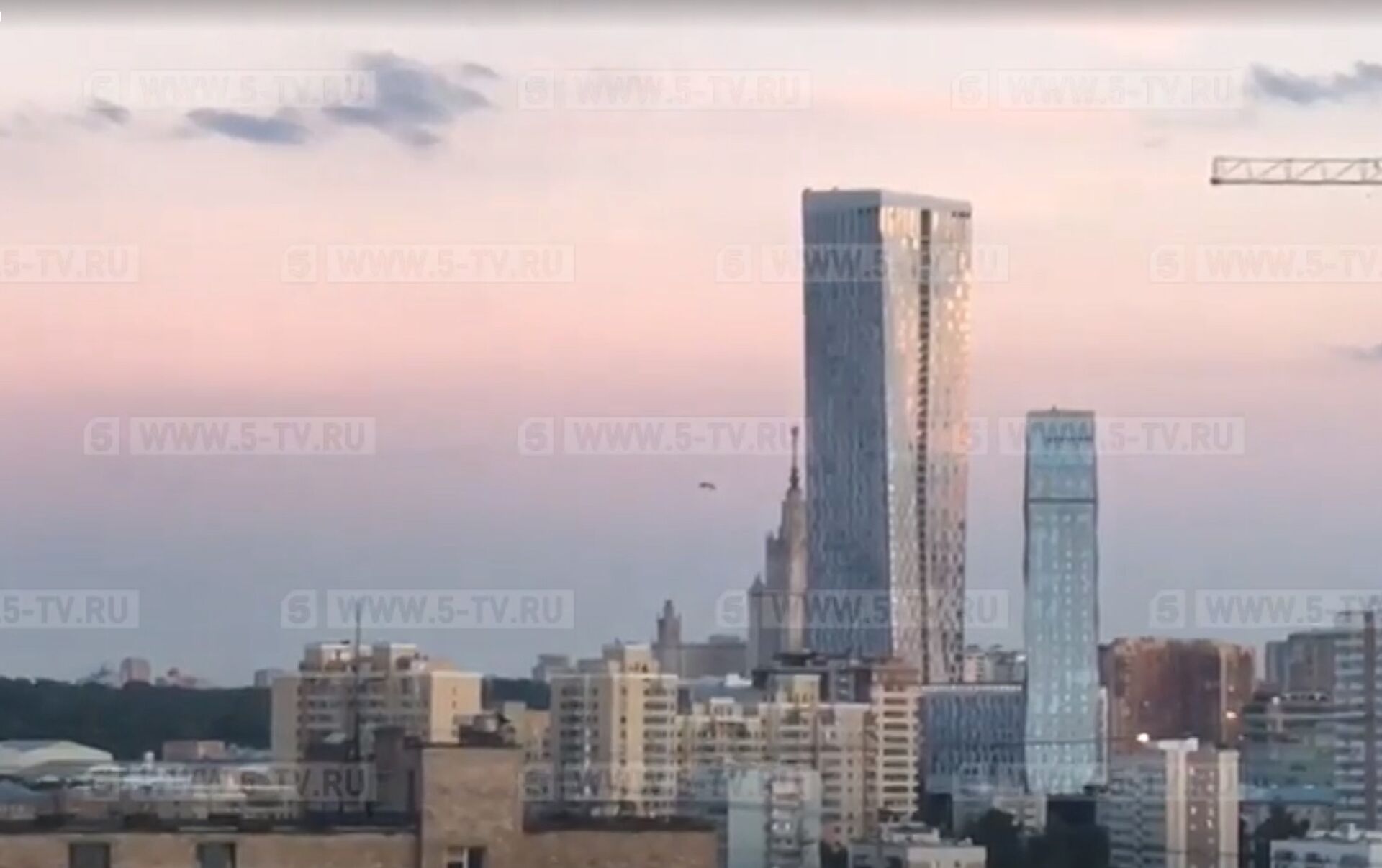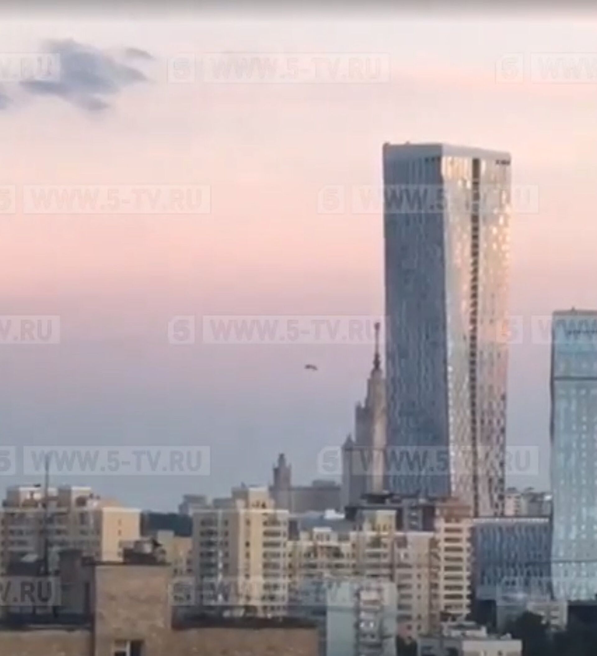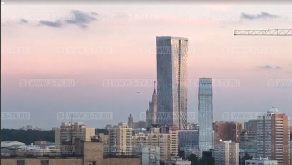 На кадрах видно, как парашют некоторое время парит над жилыми домами и затем медленно идет на снижение.