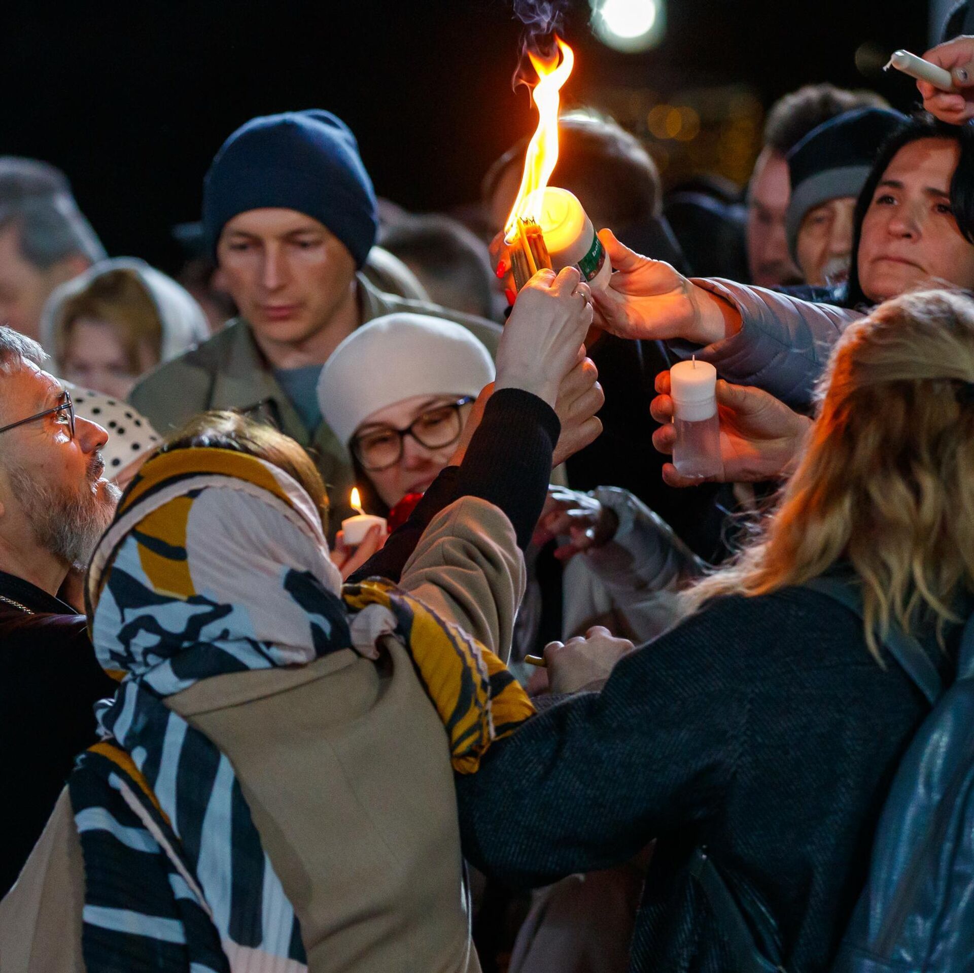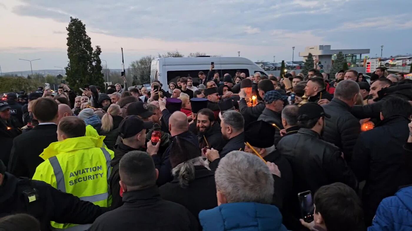 Радостная толпа в аэропорту Кишинева встретила Благодатный огонь, люди делятся пламенем